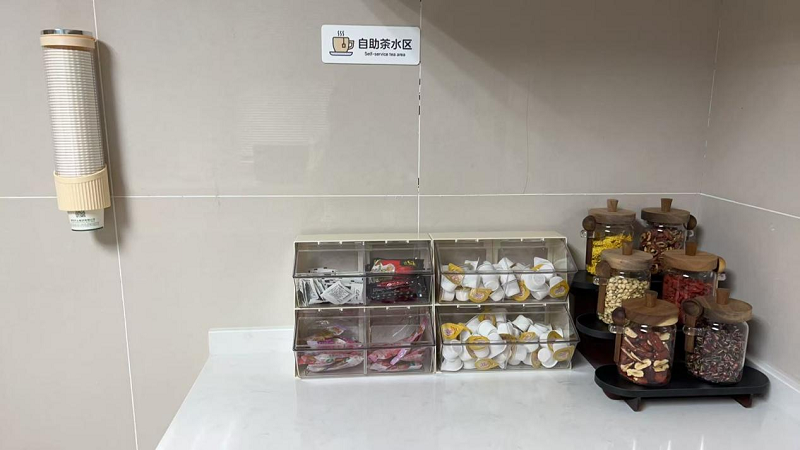 在 “能量空間” 里,各類設(shè)施一應(yīng)俱全。飲品方面,不僅有香醇的咖啡提神醒腦,還有多種口味的花茶供員工養(yǎng)生調(diào)理。