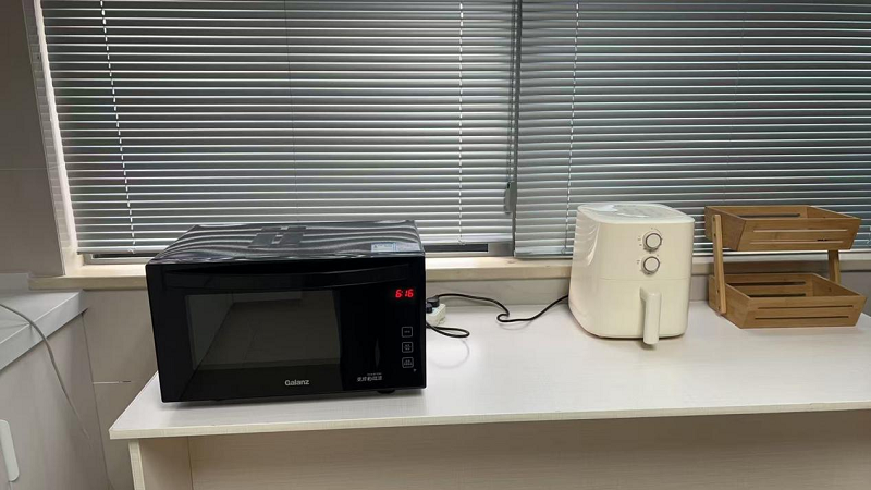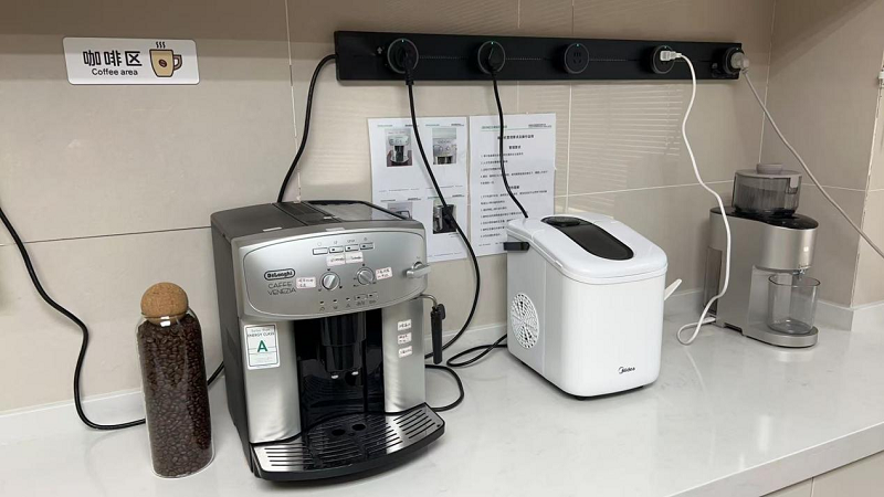 設(shè)備上,配備了冰箱方便員工存放食材,微波爐讓加熱餐食變得輕松便捷,咖啡機(jī)隨時(shí)能制作一杯熱飲,空氣炸鍋可滿足員工的簡(jiǎn)易烹飪需求,制冰機(jī)能在炎炎夏日帶來一絲清涼,榨汁機(jī)則為注重健康的員工提供了鮮榨果汁的可能。